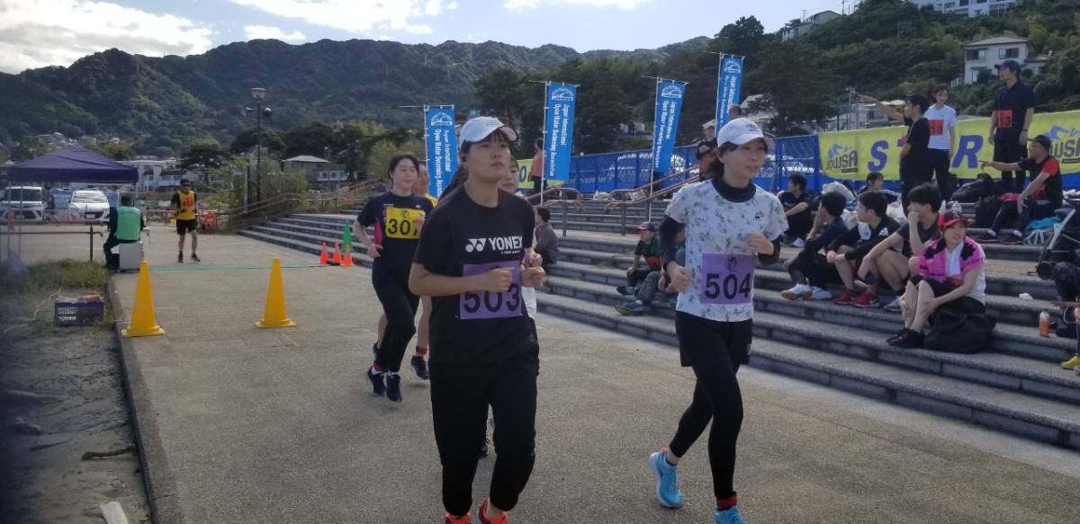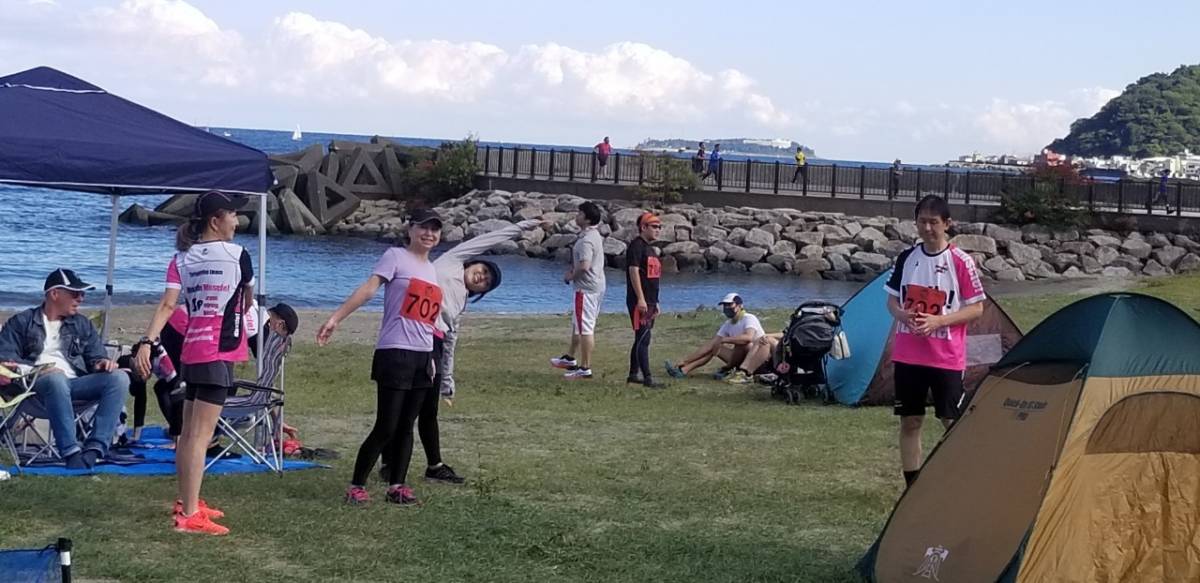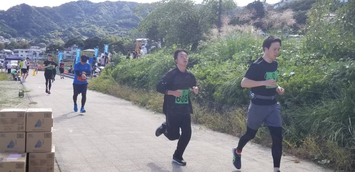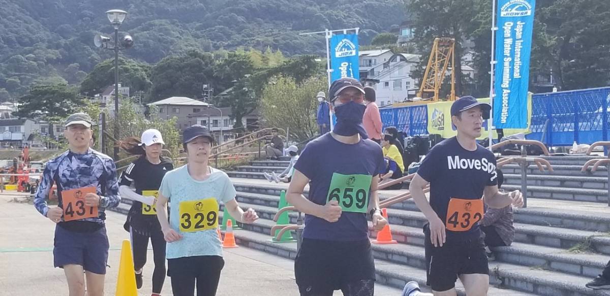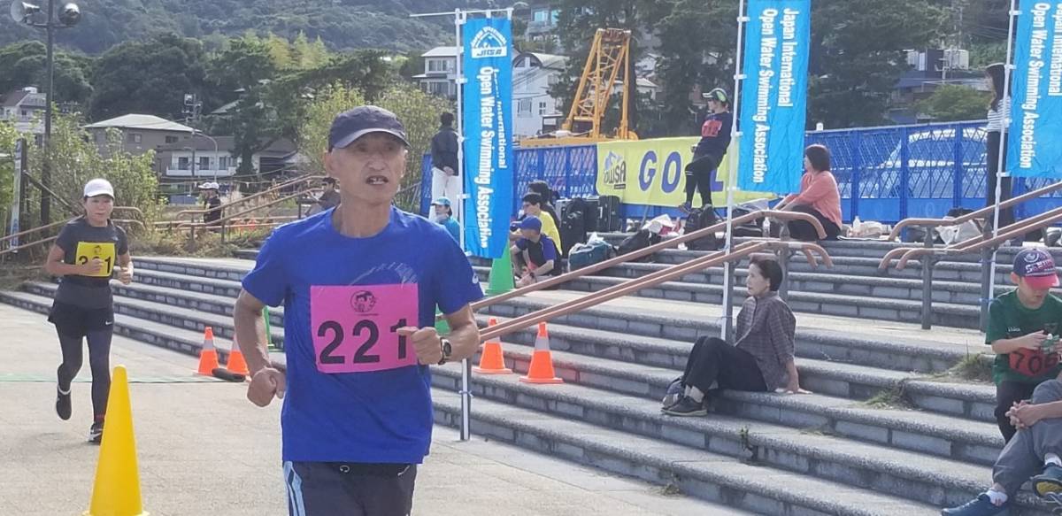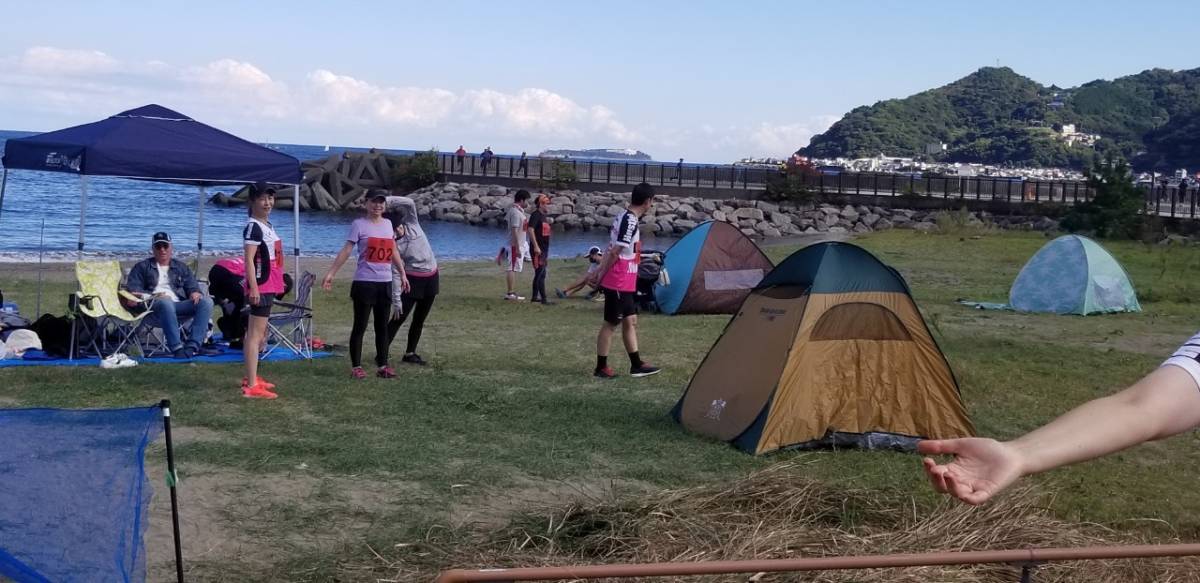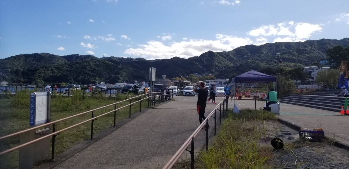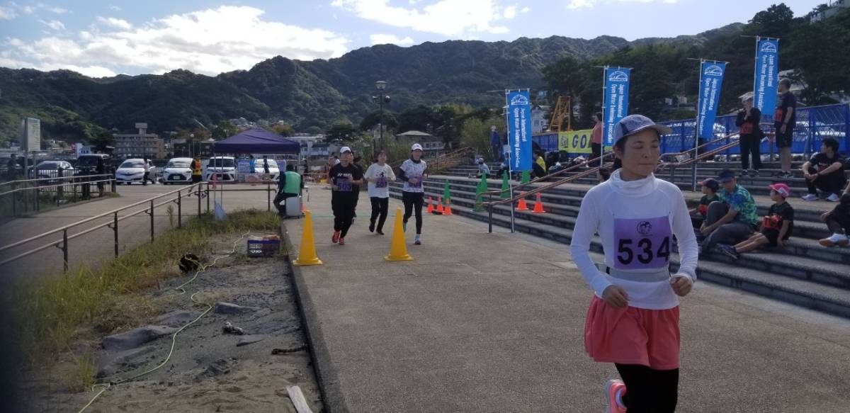 朝晩の気温が急に下がる秋となったが、こちら南熱海では風もなく、昼間の気温が30℃近くまで上昇した。よって、水を体にかける20キロの選手が目立った。