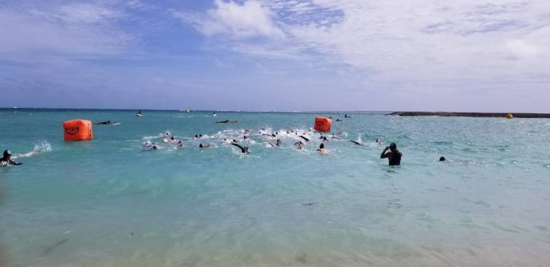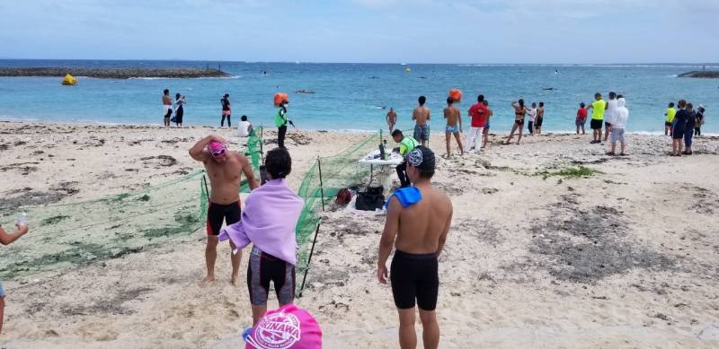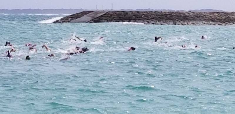 特に、3000mのスイマーには、2500mと短縮距離とせざるをえなかったが、選手泳力を信じ、敢えて理事長判断で湾の外に一ヶ所ブイを移動して、タフなコースを設置した。