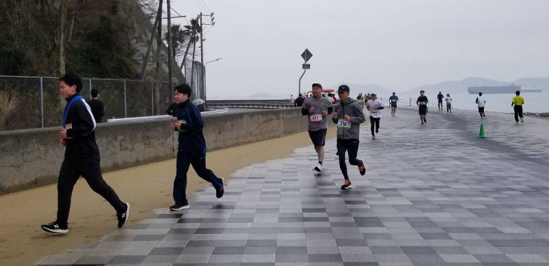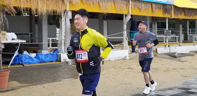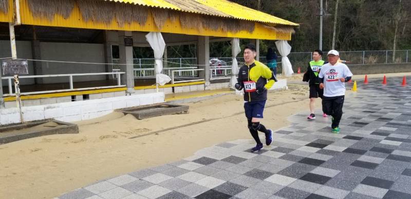 一周回2.5キロに設定し、ハーフマラソンで8周回とした。風光明媚な三河湾の夕焼けは次回への楽しみとお預けになったが、家族や仲間の応援するする高い声が選手を後押しした。