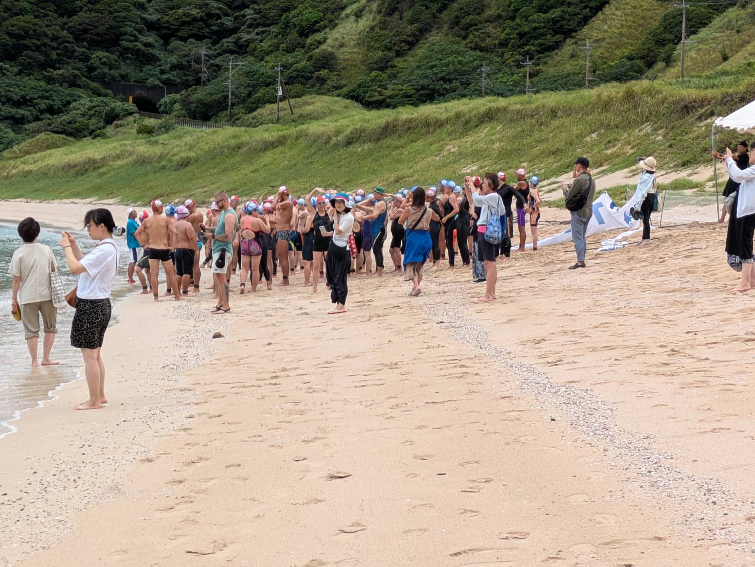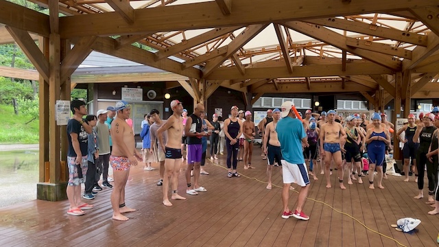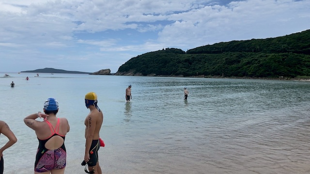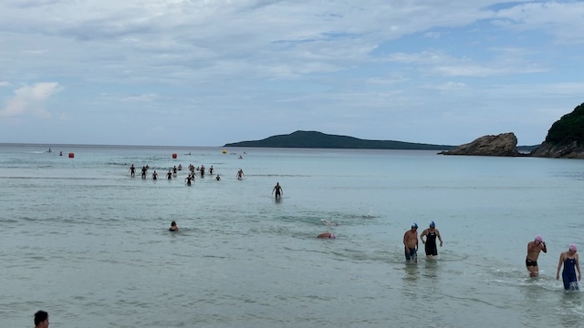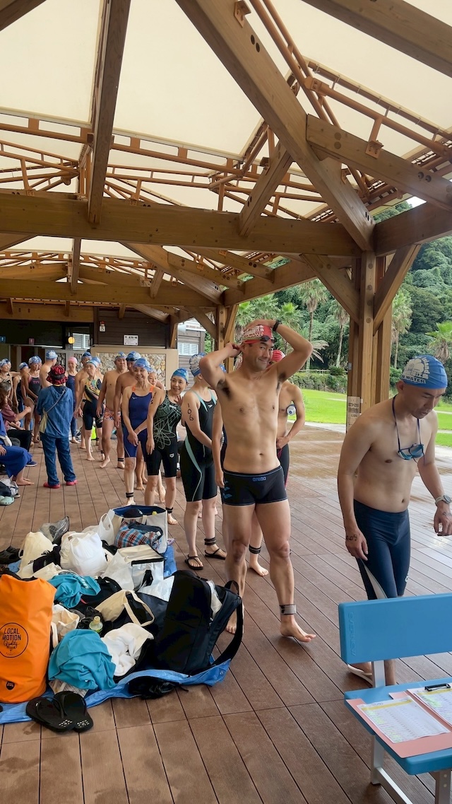 スタートの合図とともに108名の選手が一斉に泳ぎ出し、30分前まで雷雨に見舞われていたとは思えないほど穏やかな海でのレースとなりました。水温は28度。選手の皆さんからは「中止になるはずの大会で、少しでも泳げたことが本当にありがたい」と多くの感謝の言葉をいただき、主催者としても大いに悩んだ末の結論ではあったがみなさまの拍手に安堵した。