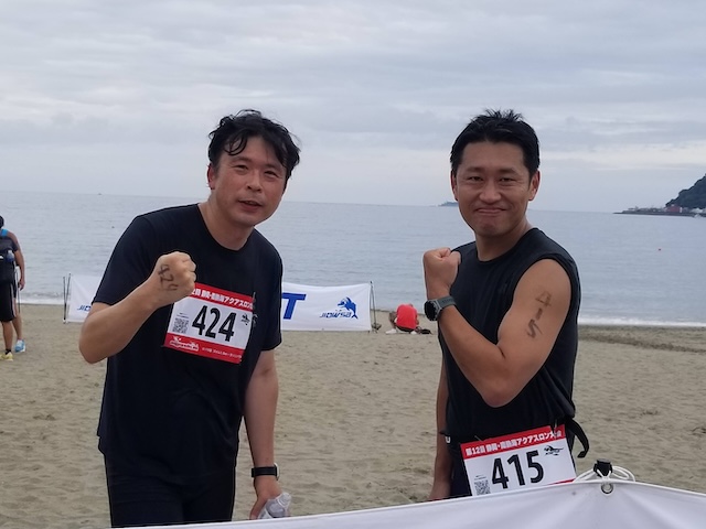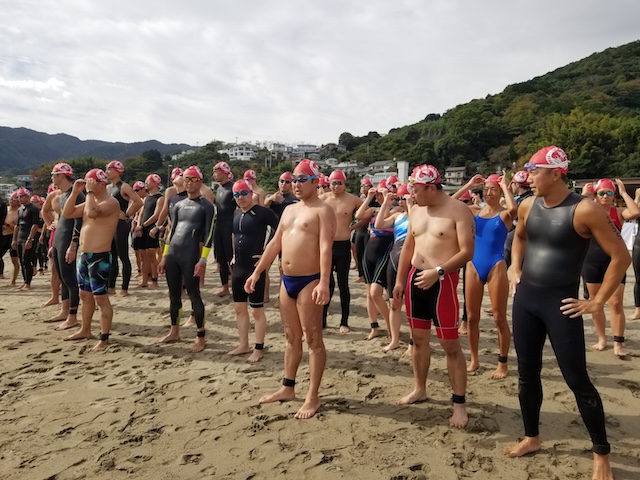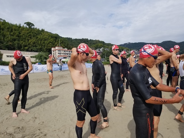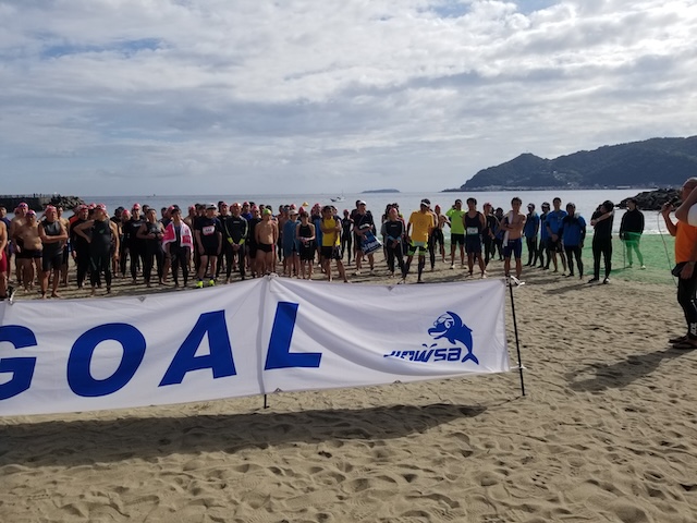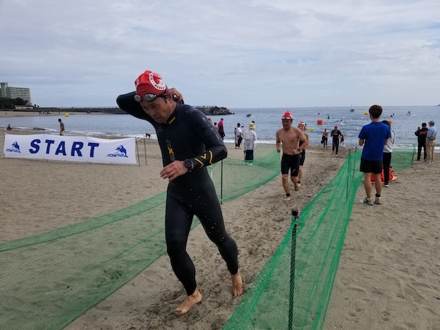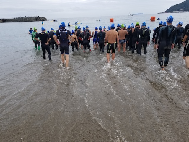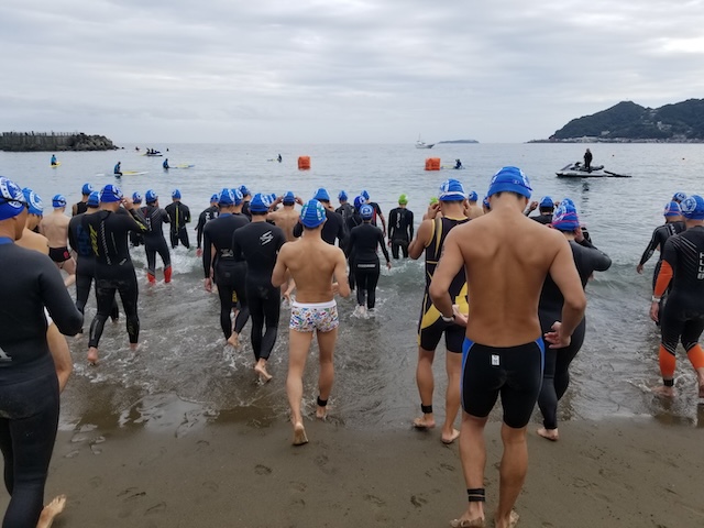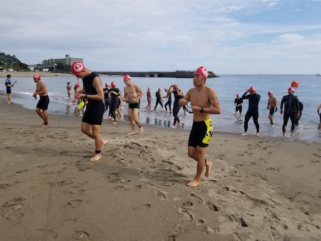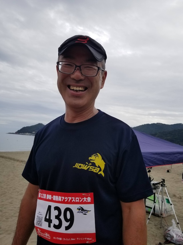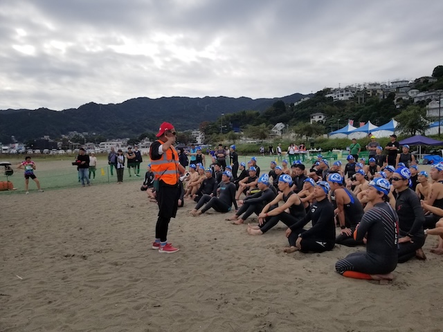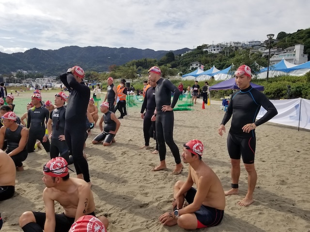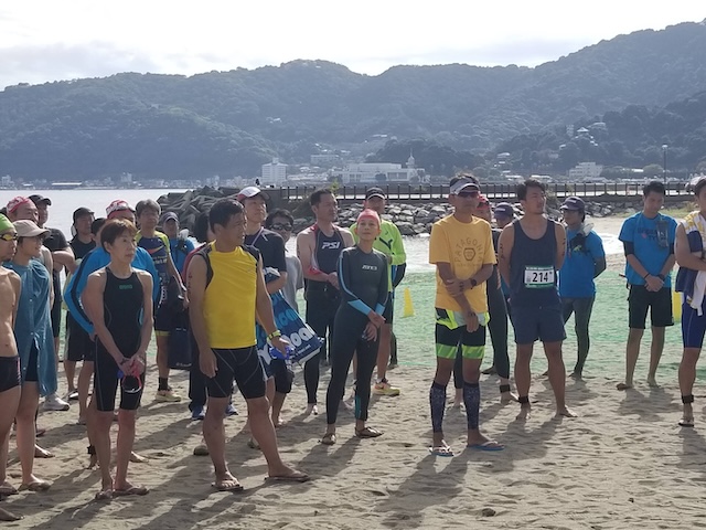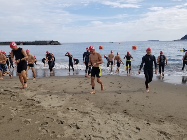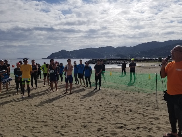 今季最終戦となる第12回静岡・南熱海アクアスロン大会は前日の風でスイムの距離が予定通りにとれるか懸念されていたが、当日は風もおさまり気温も高めで絶好のコンディションで迎えることができました。