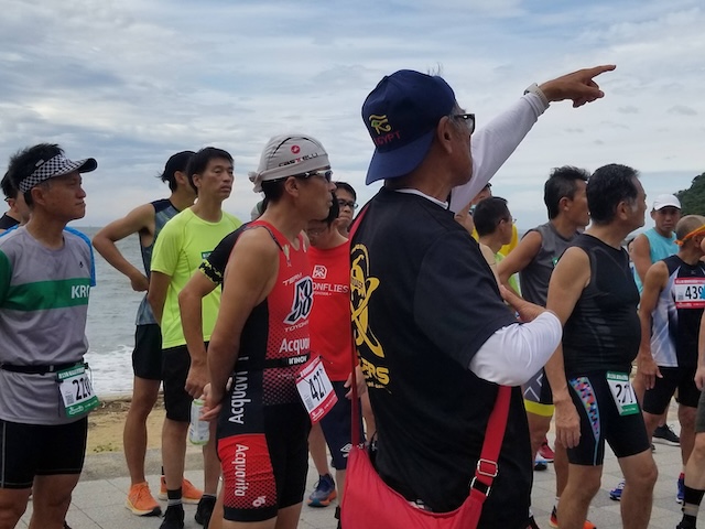 100メートルでも泳ぎたいと訴える、スイムの部の参加選手の希望は理解しつつも、安全第一、Safety has got the first priority in all aspects at any time.
