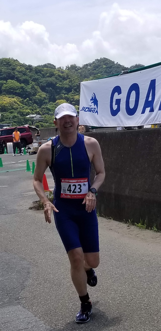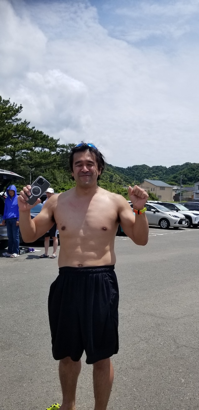 ゲリラ豪雨予報や台風の余波によるうねりの具合を刻々入る情報を駆使して実施した第13回千葉南房総アクアスロン大会だった。