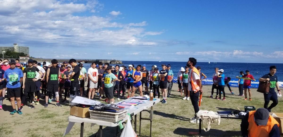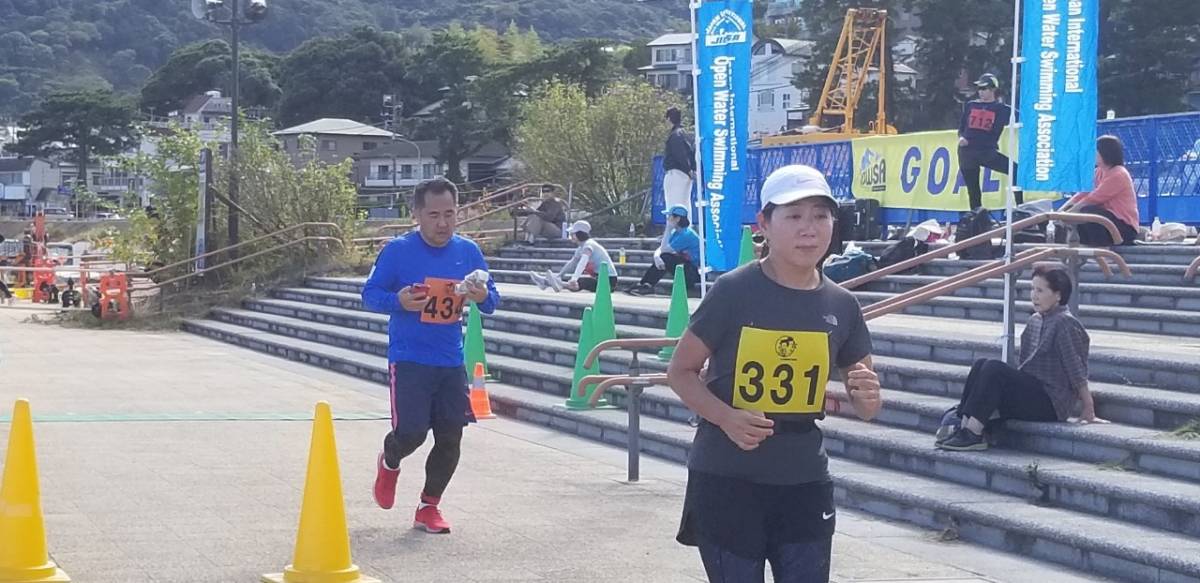 朝晩の気温が急に下がる秋となったが、こちら南熱海では風もなく、昼間の気温が30℃近くまで上昇した。よって、水を体にかける20キロの選手が目立った。