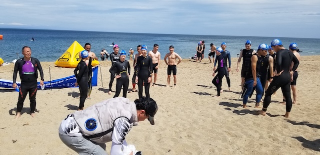 常に選手に諦める勇気を説いている理事長とはいえ、苦渋の決断を迫られた。安全委員会の協議の結果、ゲートブイを3周回計650メートルのスイムとした。