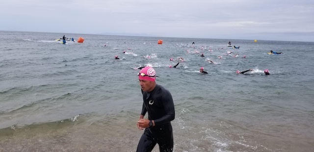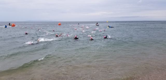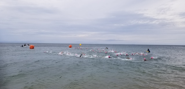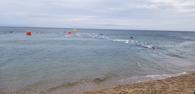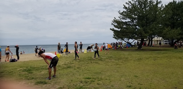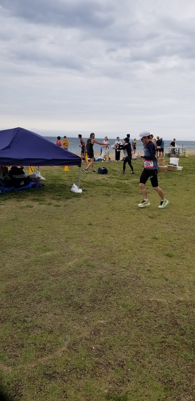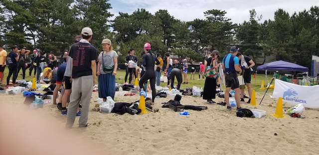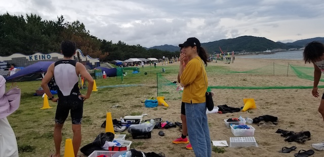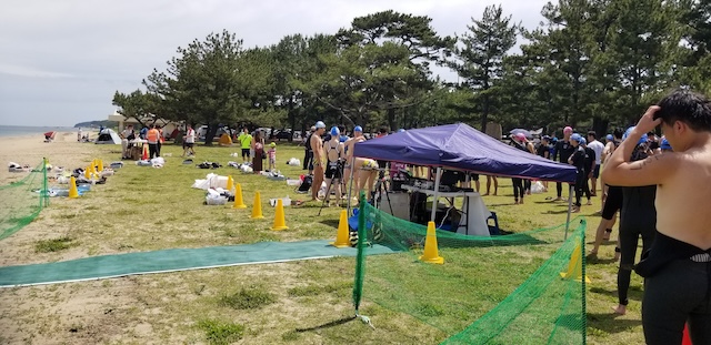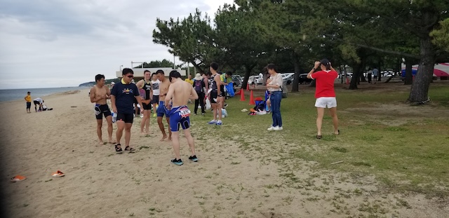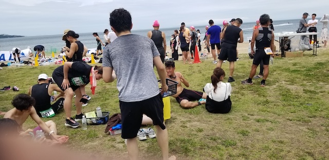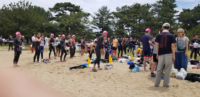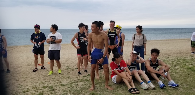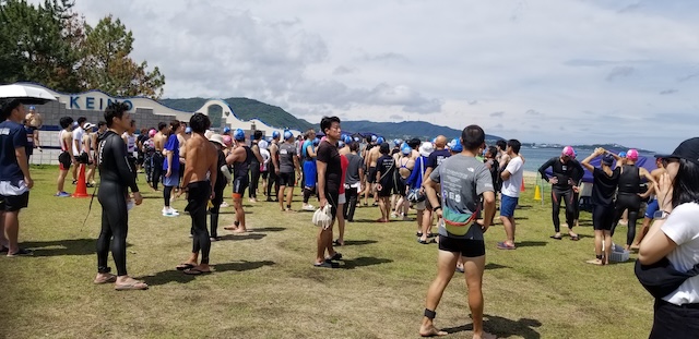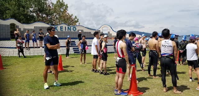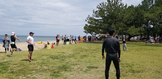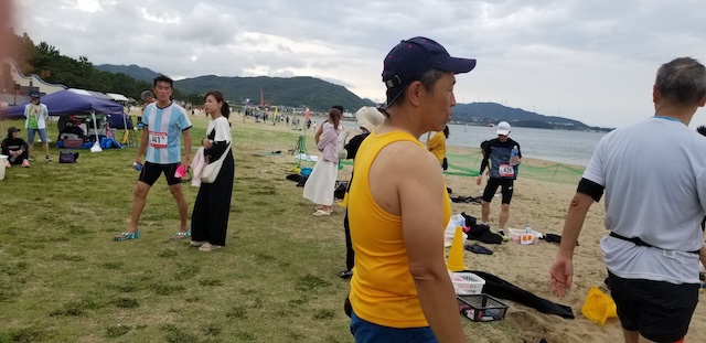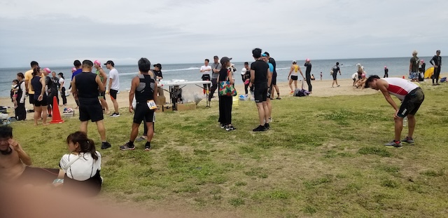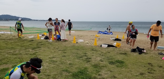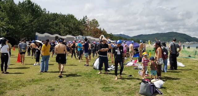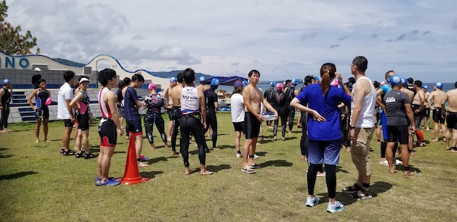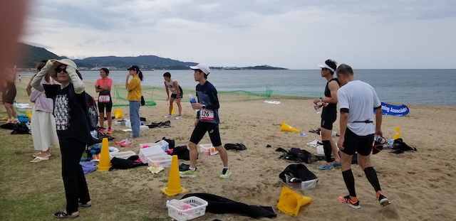 第二回淡路島アクアスロン大会は、梅雨前線の影響もあり曇り空スタート。