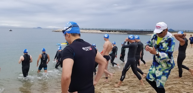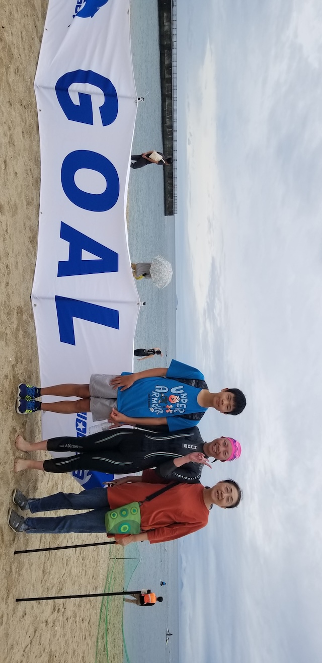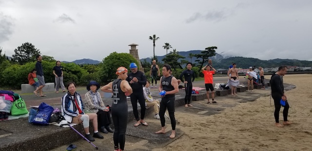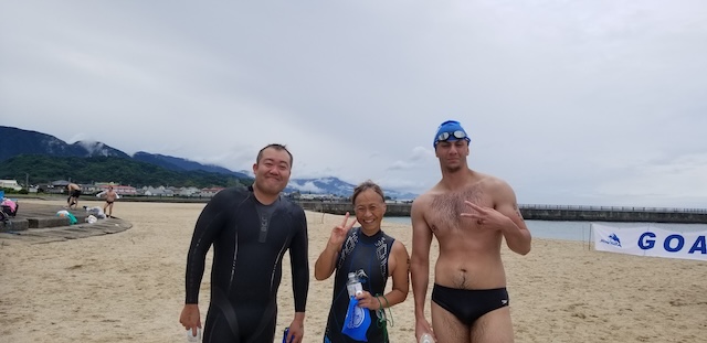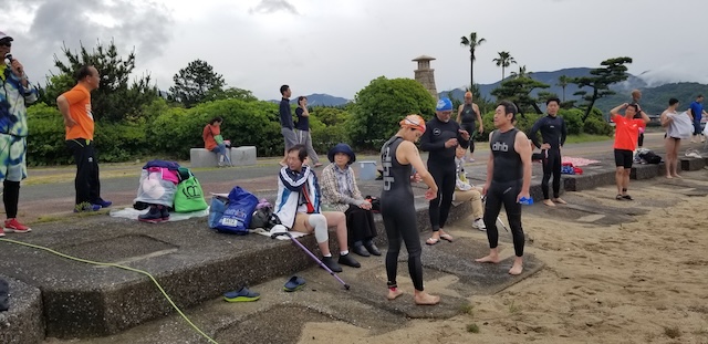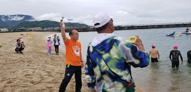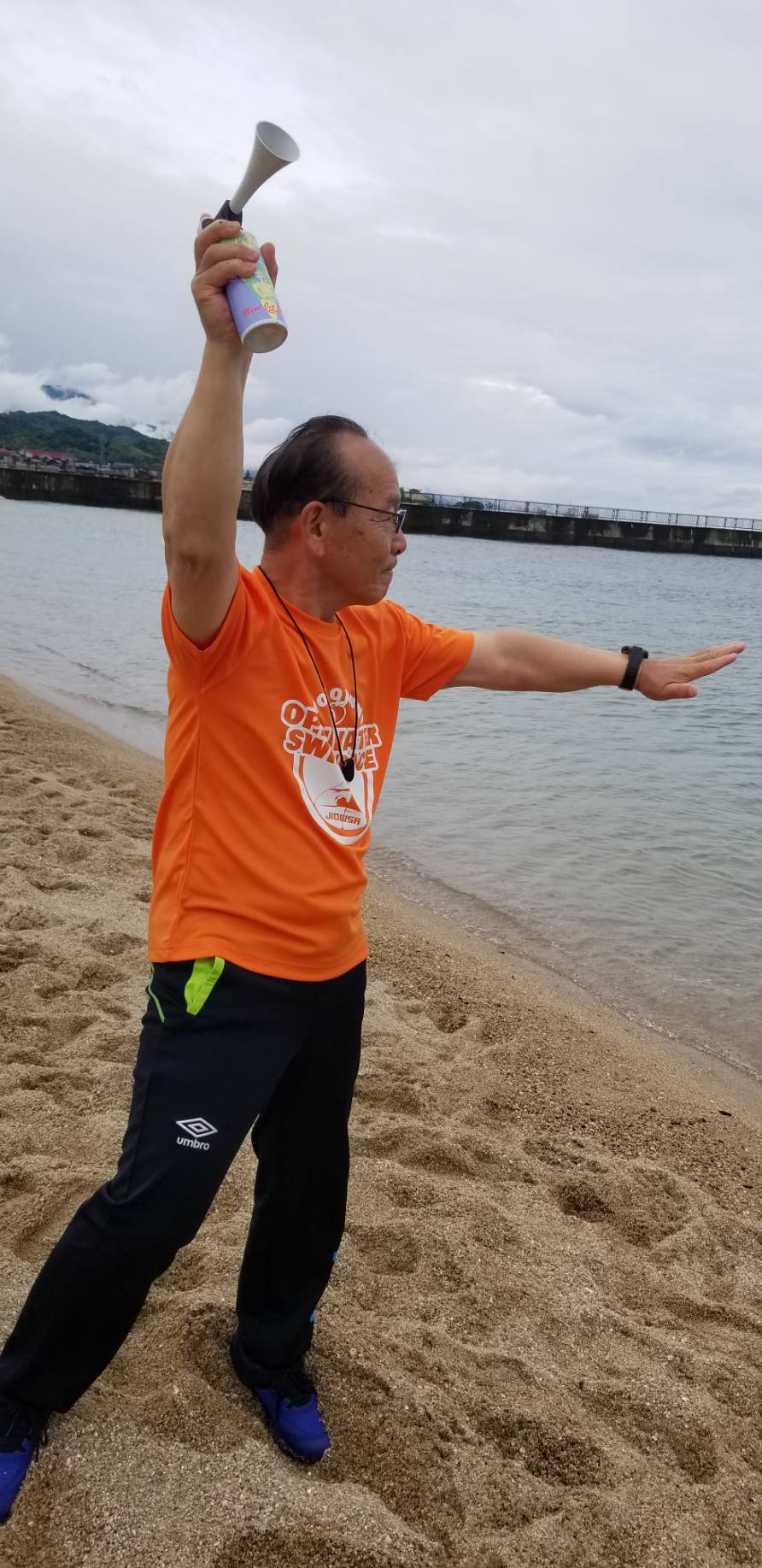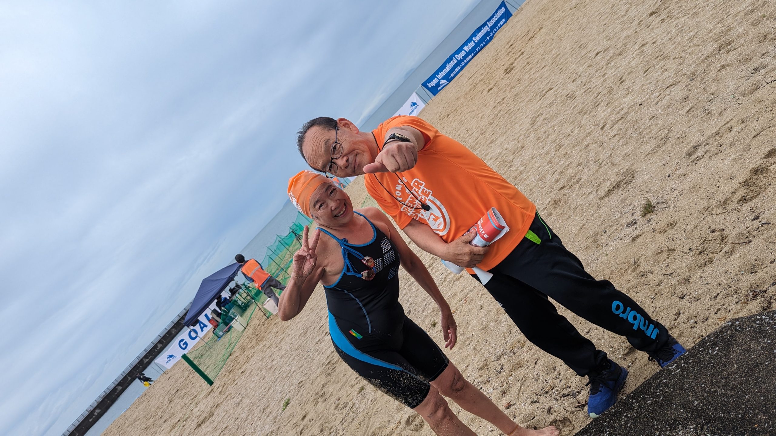 特に、海から上がる選手にお水を手渡してくださった、障害を持つ水泳大好き「ちいさん」に感謝します、風邪ひかなかったかな。