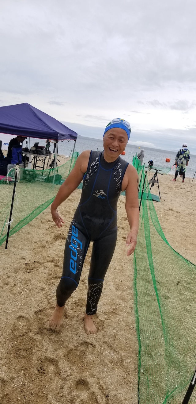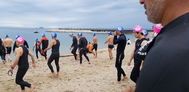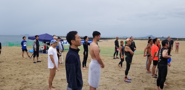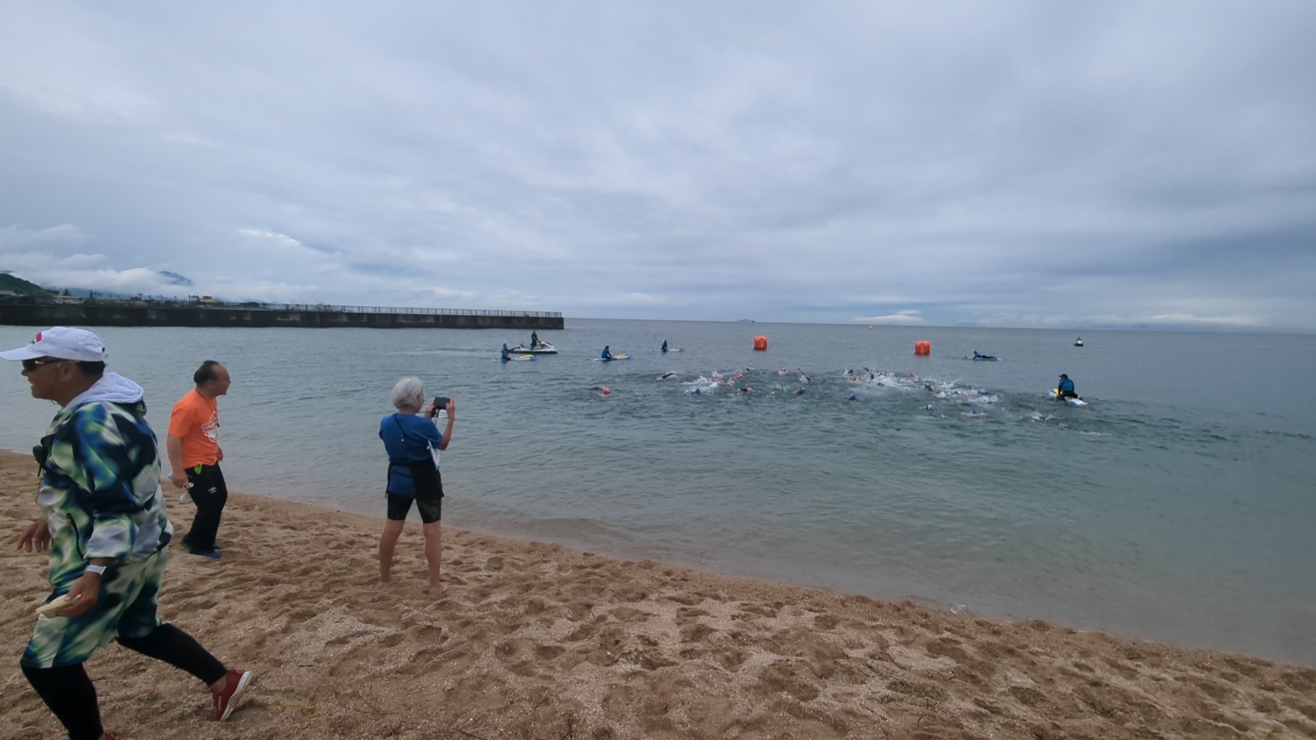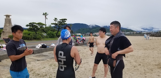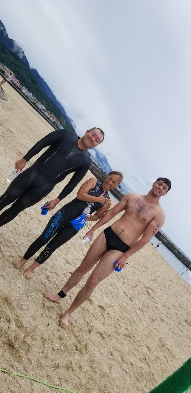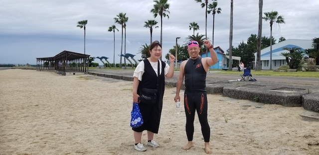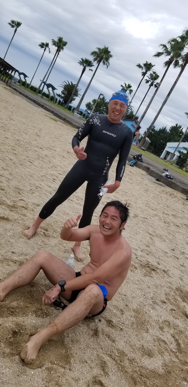 特に、海から上がる選手にお水を手渡してくださった、障害を持つ水泳大好き「ちいさん」に感謝します、風邪ひかなかったかな。