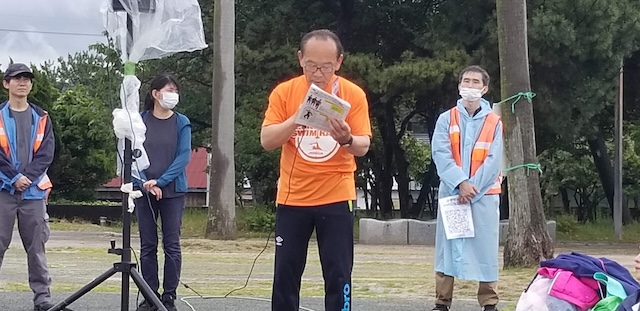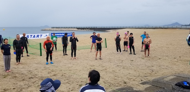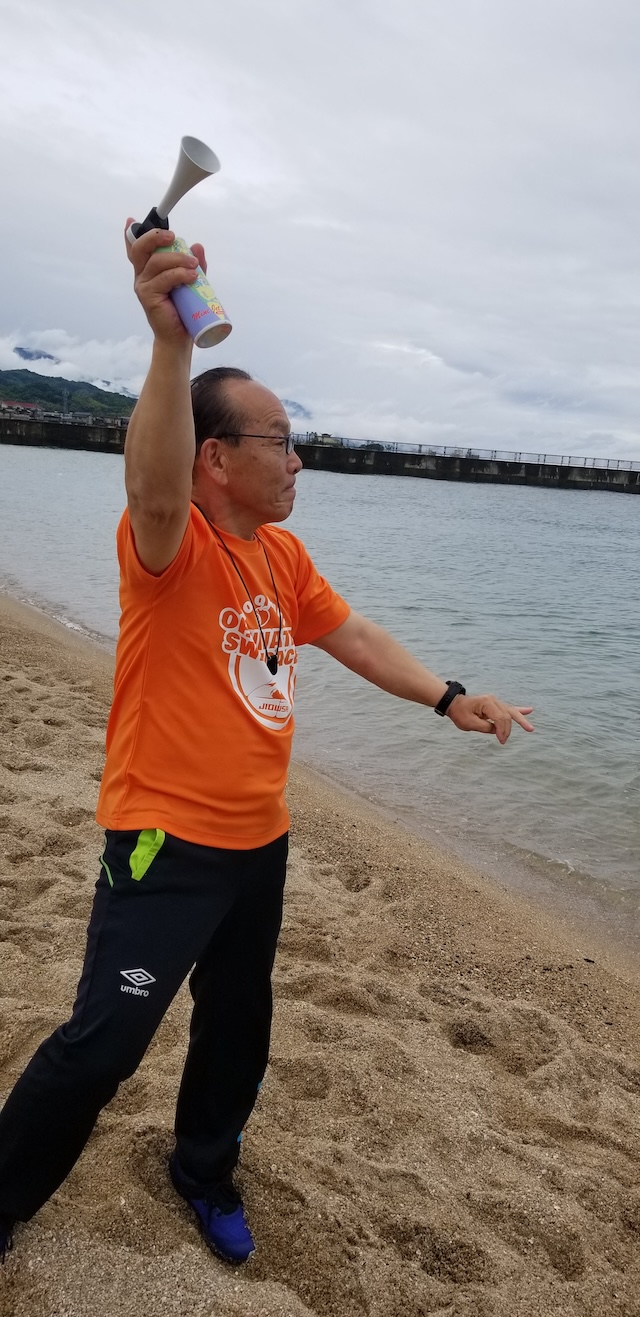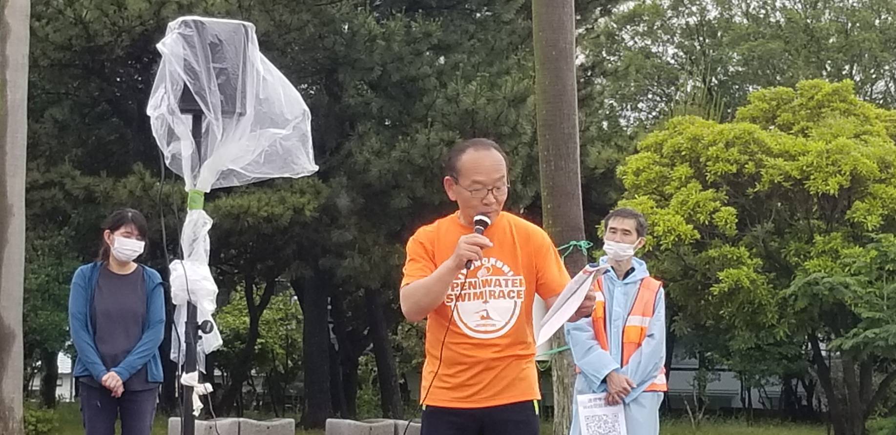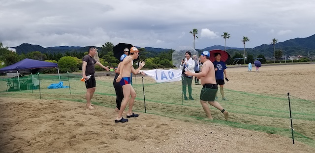 しかしながら、武智邦典市長が到着するのを待ったかのように雨がやみビーチでの開会式が挙行できた。
