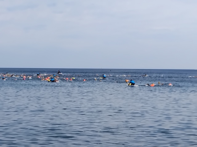 前日の雨は止んだものの、当日は強い風と荒波という厳しいコンディション。しかし、選手たちは力強く海に挑み、ゴールした瞬間には笑顔や達成感あふれる表情が広がりました。