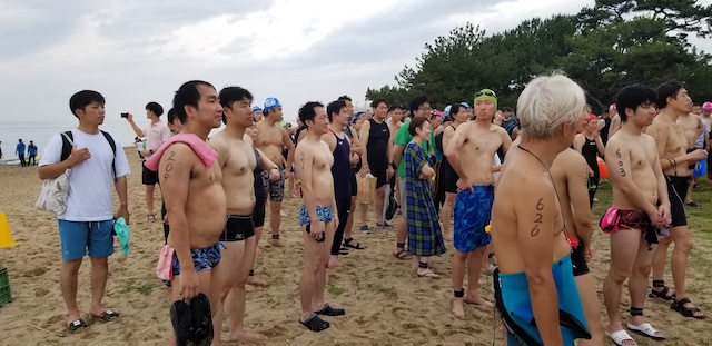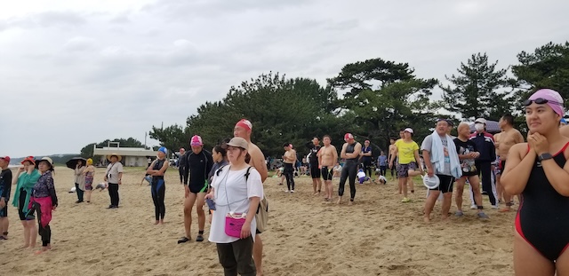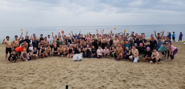 雨除けの準備を整えてからの受付を開始したがビーチクリーンの頃もまだ、雨は待っていてくれた。外気温26度海水温22度、スタート時には少し冷たく感じる海水温であった。