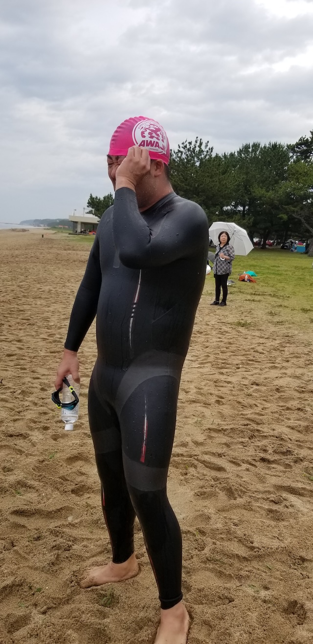 3000mを設定できる淡路の海は透明度も高く、梅雨前線による影響でうねりも発生していたが実行できたことで安堵している。