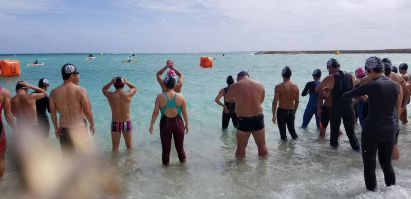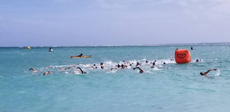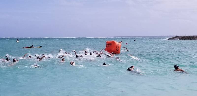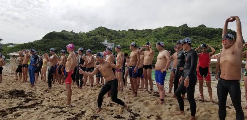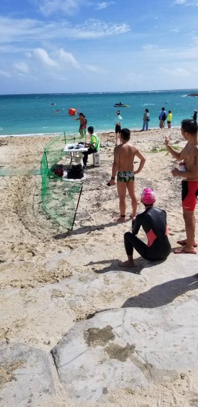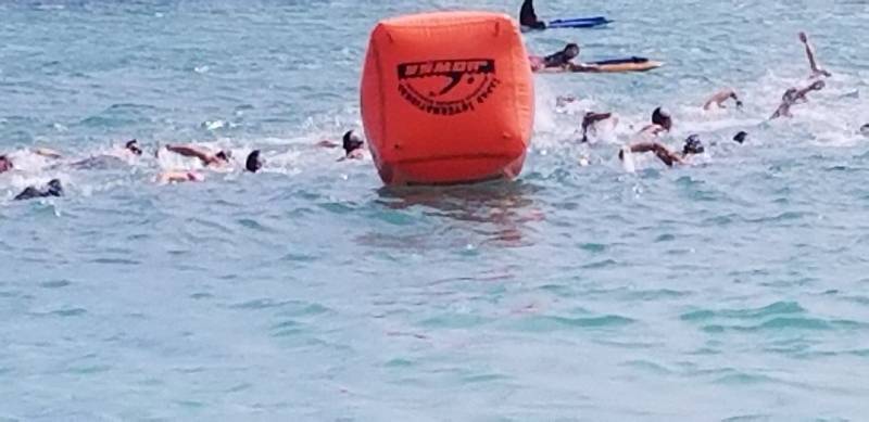 特に、3000mのスイマーには、2500mと短縮距離とせざるをえなかったが、選手泳力を信じ、敢えて理事長判断で湾の外に一ヶ所ブイを移動して、タフなコースを設置した。