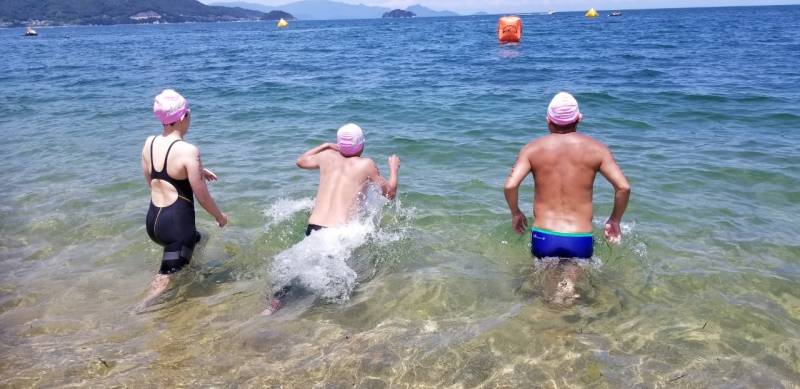 水温26℃波も穏やかで透明度も高い絶好のコンディションから500メートルのレースが始まった。