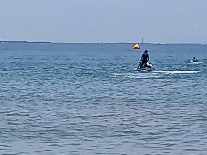 海水浴のみならずゴムボートで釣りを楽しむ人々もいて、地元に愛されているビーチである。