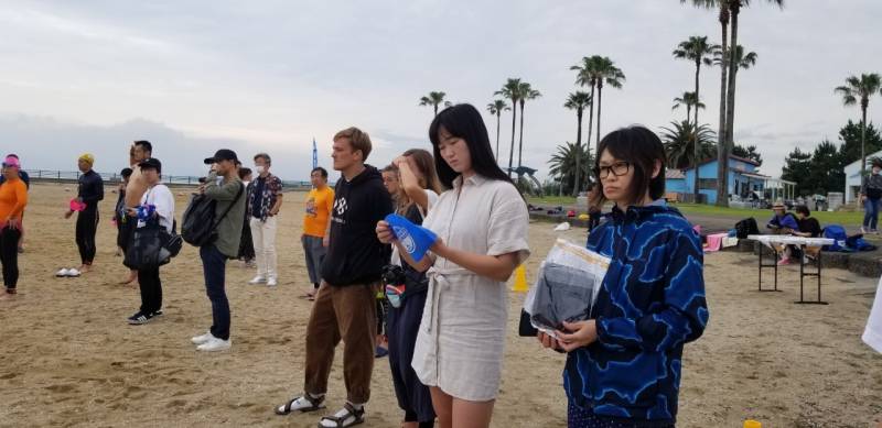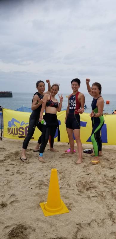 武智市長には、率先してビーチクリーンをしていただくばかりでなく、大会への祝辞、スターター役の労をお取りいただいた。スピーチの中で、この五色姫海浜公園のビーチスポーツはすでにビーチバレー、ビーチテニス、ビーチサッカー大会も開催されているとのこと。今後はOWSやアクアスロンなども加えて、ビーチスポーツのメッカを伊予市は目指しているとのことであった。JIOWSAももっとたくさんの参加者をお迎えできるよう創意工夫をすると約束した。
