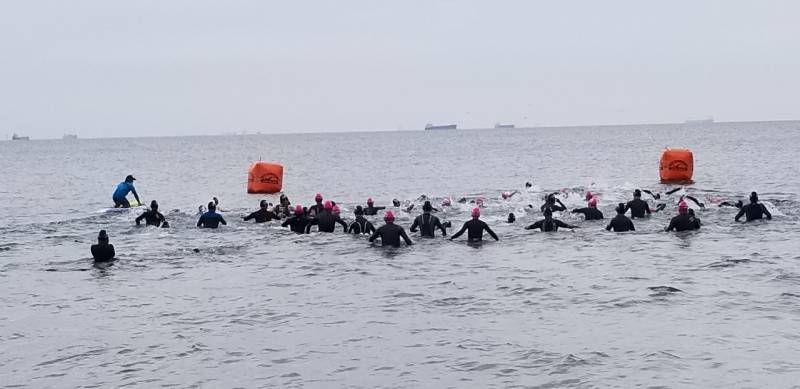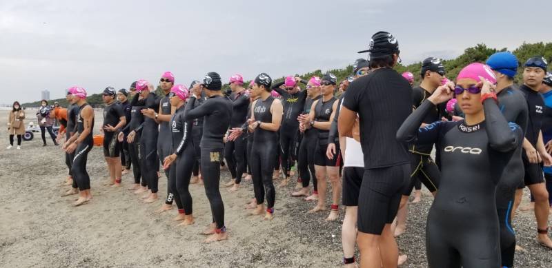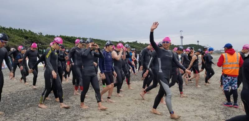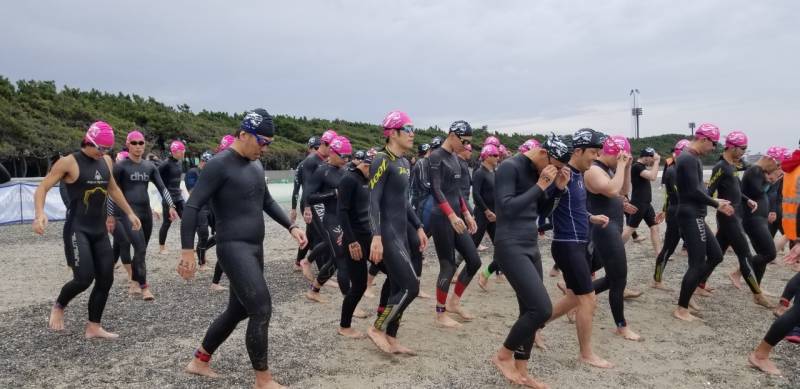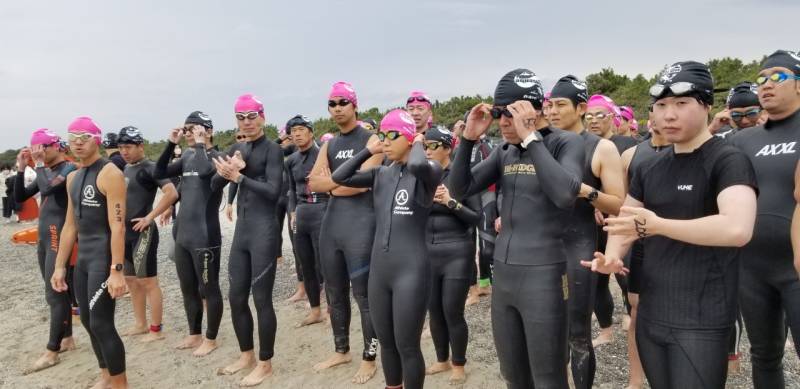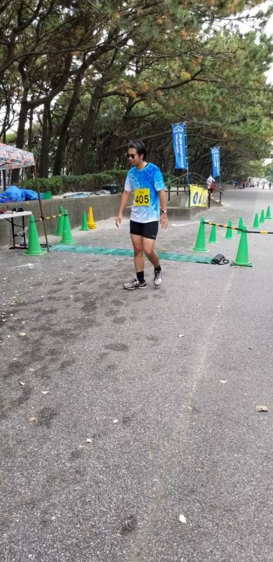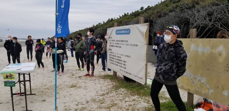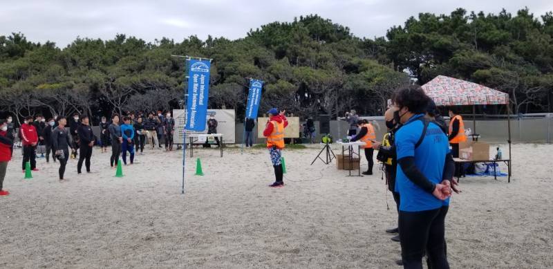 アクアスロン大会最終戦をなんとか安全安心に競技を進めるため、海水温15度の状況下をどうするかの対策を検討して、低体と温症を防げる範囲をスイム距離ショート種目は450メートル、ロングとスイムは900メートルと設定し距離短縮をした。80名ほどの参加者ではあったが、ランは距離短縮もせずにスタートし、雨が降りだす前にレースを終了することができた。