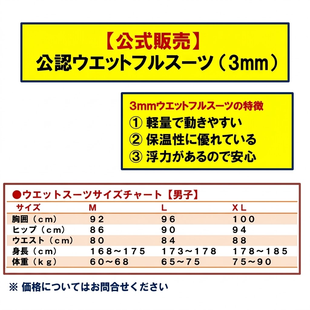 #1070 公認ウエットフルスーツ(3mm) 男性用 15,000円(税込)